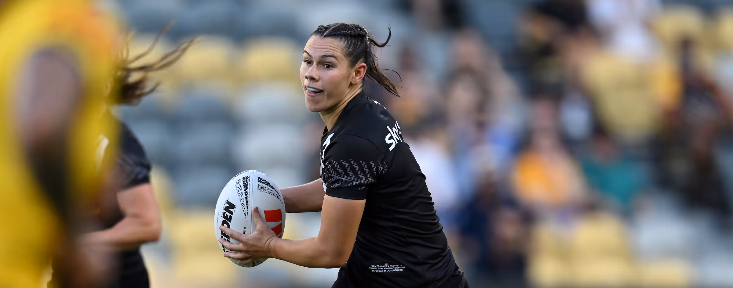 She scored a try on Kiwi Ferns Test debut at centre in the pool win over France and backed up to play fullback in the victory over Cook Islands four days later, but did not feature in subsequent matches at the tournament.